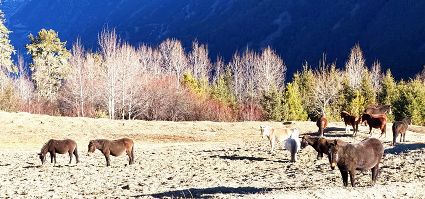 洛克所經(jīng)過的地方就是三巖龍鄉(xiāng)的猛董,這是一處鮮為人知的隱世天堂。猛董有“五絕”,即“山、湖、谷、寨、寺”,山是被當(dāng)?shù)厝诵欧顬樯裆降柠湹刎暩拢湹兀卣Z為珍珠),湖是神山腳下的麥地措(珍珠湖),谷是雅礱江谷地的藍(lán)月山谷,寨是猛董“后花園”的普米寨子,寺是修建于明清時(shí)期的猛董古寺。