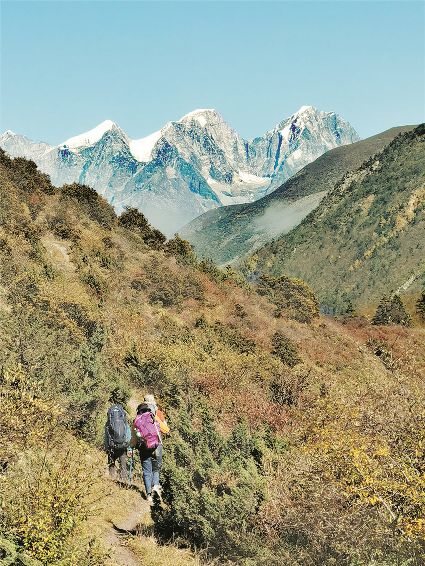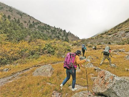 一般徒步線路需要三天完成,第一天從康定折多塘開始徒步,進(jìn)入毛家溝后一路緩上坡經(jīng)過美麗的荒野,下午就可以到達(dá)蘭尼巴埡口扎營。第二天上到山脊觀貢嘎主峰以及衛(wèi)峰小貢嘎、嘉子峰、愛德嘉峰、日烏且峰、勒多曼因,還能看到雅拉雪山和美麗的云海金山。第三天原路返回,或經(jīng)木雅圣地去新都橋或翻過埡口去甲根壩,最推薦的是從蘭尼巴山脊繼續(xù)前行到達(dá)恩支漫希湖,沿雅哈埡口、桑恩措、冷嘎措、泉華灘、木居海、里索海、子梅村、貢嘎寺、巴王海,連接貢嘎穿越線,沿途的風(fēng)光更加動(dòng)人。