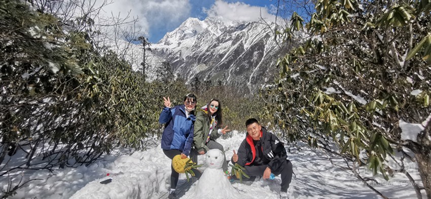 今年春節(jié)期間,我州A級旅游景區(qū)共接待游客10.96萬人次,實現(xiàn)門票收入319.86萬元。圖為游客在海螺溝景區(qū)盡享冬日樂趣。