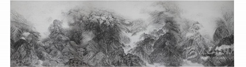 在我剛開(kāi)始創(chuàng)作“茶馬古道”之時(shí),有人問(wèn)我:“給誰(shuí)畫(huà)的?拿來(lái)賣(mài)的嗎?”我連連搖頭,問(wèn)者滿臉疑惑。也有同行對(duì)我創(chuàng)作大幅素描山水畫(huà)有些不解。其實(shí)我沒(méi)那么奇葩,只是每個(gè)人想要的不同而已。我花費(fèi)大量的財(cái)力和精力去采風(fēng)、寫(xiě)生并潛心創(chuàng)作《茶馬古道》,是因?yàn)槲议L(zhǎng)在“茶馬古道”,是“茶馬古道”養(yǎng)育了我,是我的“責(zé)任感”使然;為什么還要畫(huà)一幅難以參加常規(guī)展覽尺寸(966×266cm)的作品呢?是因?yàn)?/span>“茶馬古道”東線艱險(xiǎn)而又壯美的河山及所包涵的故事,用較小尺幅難以表達(dá)盡興。再則在藏族唐卡布上用鉛筆勾勒和皴擦出中國(guó)山水畫(huà)的意境,是一種新的嘗試,也是中西文化的再一次交匯。
