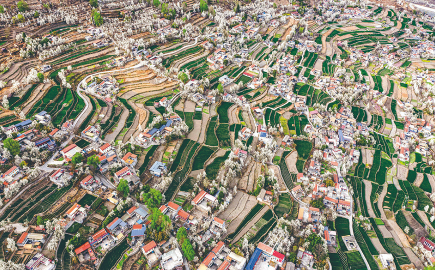 仙姿白雪帔青霞,月淡春濃意不邪。春分前后,云上新江南阿壩州金川縣,春和景明、花團(tuán)錦簇,春光無(wú)限好。大金川河水清澈明凈,蜿蜒流淌,河兩岸山間田野,千山萬(wàn)壑,高低起伏、錯(cuò)落有致,成片的梨花競(jìng)相綻放,一枝枝、一團(tuán)團(tuán)、一簇簇,嬌艷欲滴,空氣中彌漫著梨花的芳香,恣意綻放的梨花,引來(lái)各地游客賞花踏青、漢服拍照、親子游玩;天空湛藍(lán),碧空如洗,潔白如雪的梨花,綠油油的麥苗,獨(dú)特的藏式建筑,讓金川縣有了“云上新江南·醉美梨花源”的美譽(yù),“雪梨花景觀”“紅葉景觀”被農(nóng)業(yè)農(nóng)村部評(píng)為“中國(guó)美麗田園”景觀,成為全國(guó)唯一獲得兩項(xiàng)桂冠的“中國(guó)美麗田園”目的地。3月底,四川省報(bào)紙副刊研究會(huì)“行阿壩·城鄉(xiāng)融合看金川”大型新聞采訪團(tuán)走進(jìn)金川,一幅路上山、田成格、渠成網(wǎng)、花成海的世外梨源美麗畫卷盡現(xiàn)眼前。