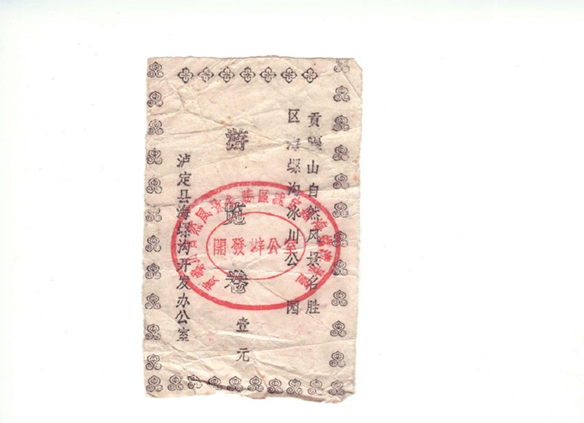 我有心收藏海螺溝旅游開發(fā)建設(shè)三十年來不同時期、品相各異的門卷、門票數(shù)枚。門卷、門票是游客進(jìn)入景區(qū)的憑證,也是景區(qū)的“臉面”。在我收藏的門卷、門票中有一枚海螺溝景區(qū)第一代門卷。構(gòu)圖簡單,白底黑字的第一代門卷,雖然在歲月中褪去了鮮色,但在方寸之間卻承載著海螺溝景區(qū)建設(shè)最初的時光和開發(fā)建設(shè)者的記憶,更是瀘定縣三十年前發(fā)展旅游的歷史見證。一晃三十年光陰,至今我對海螺溝景區(qū)第一代門卷的來歷,還記憶猶新。