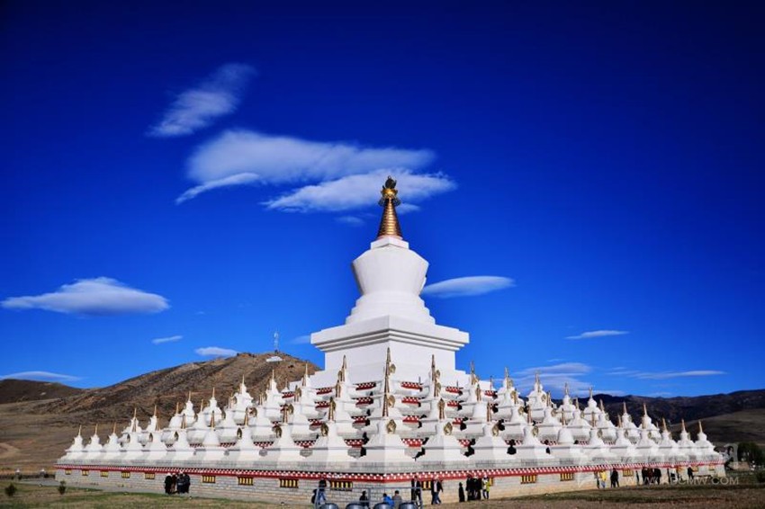這種尚白的文化心態(tài)在藏地處處可見(jiàn):屋頂四角及門楣砌白石、要道山口的嘛呢堆上放白石、祭祀山神和箭桿山系上一束雪白的羊毛、供神煨桑時(shí)撒上糌粑,等等。每逢佳節(jié),藏族人們都要將家里的糌粑口袋、酥油桶、酒皿、房頂、要道、山頂?shù)认瞪习籽蛎员砥砀l鼮?zāi)的愿望,也用白羊毛來(lái)表示純潔與忠誠(chéng)。(據(jù)《甘孜史話》)