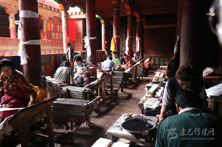 公元1730年2月3日,正式在倫珠頂開始進(jìn)行校對(duì)和雕刻工作。為了提高印版的質(zhì)量,土司規(guī)定實(shí)行三級(jí)審校制度,即書法家們負(fù)責(zé)對(duì)寫好的版文進(jìn)行兩校,以便及時(shí)修改錯(cuò)漏。然后經(jīng)編審師們復(fù)審和終審后,方可交刻工雕刻??掏旰?,編審師們?cè)谇鍢由线€要進(jìn)行三校。版面改動(dòng)較多的進(jìn)行重刻,改動(dòng)較少的進(jìn)行補(bǔ)刻。規(guī)定的校次不準(zhǔn)任意減少或改動(dòng)。雕刻工作由噶瑪班珠和次白總負(fù)責(zé)。經(jīng)過60多名書寫員、10名編審師、400余名刻工以及100多名雜工的艱苦勞動(dòng),浩繁的《甘珠爾》刻版工程于在公元1734年完成。印版所用經(jīng)費(fèi),折成茶塊共計(jì)7622包(每包約20公斤)。