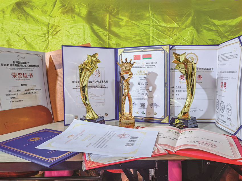 第一次比賽,取得不菲的成績,肖欣蕊有了自信。2023年6月,她又參加了中俄絲綢之路音樂大賽鋼琴比賽,拿到了二等獎,成功晉級總決賽,不過,由于時間關系沒有參加總決賽。