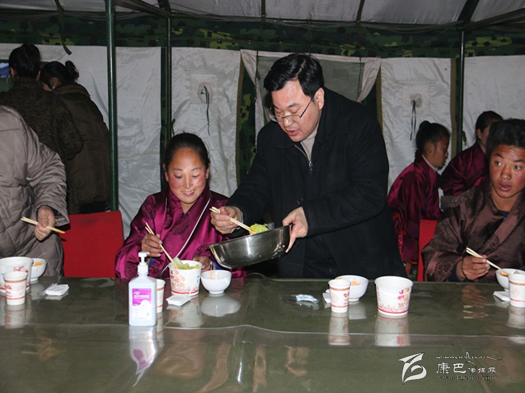 “這水餃做得很不錯”,州委書記胡昌升一邊吃著水餃,一邊對坐在身旁的學生澤仁巴姆說道,“明天就要回家過寒假了,你們家里也受了災,回家一定要多幫忙做事”。澤仁巴姆連連應允,“回去我還要告訴父母地震時學校發(fā)生的一切,有這么多叔叔阿姨幫助我們”。