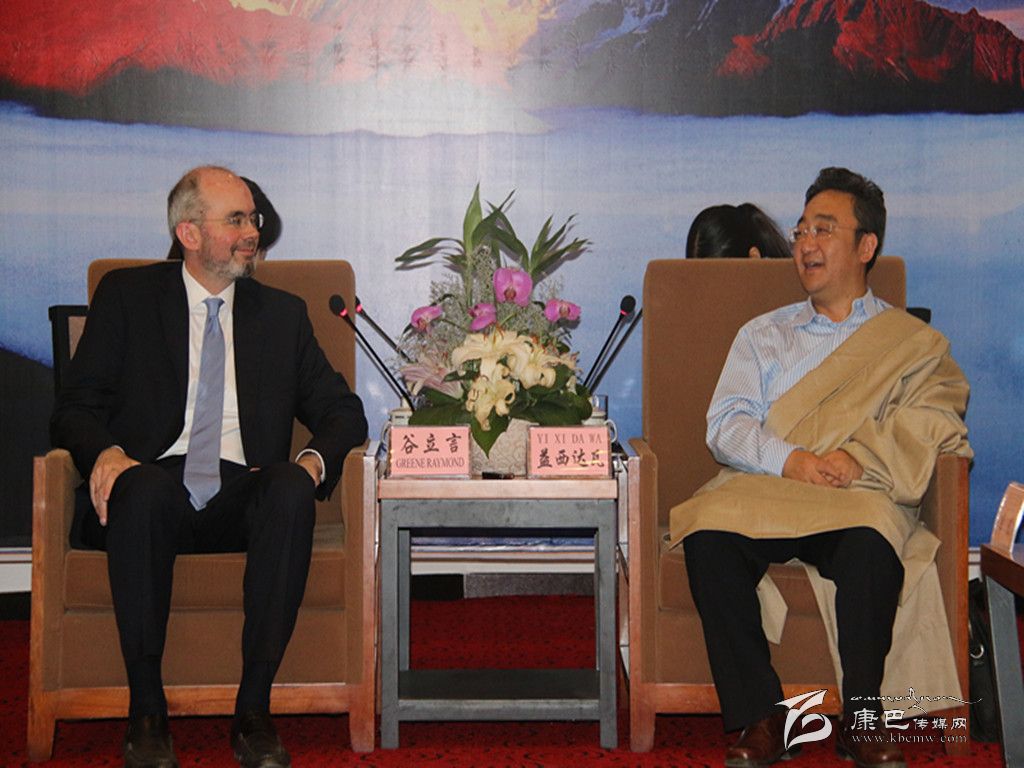 益西達(dá)瓦表示,近幾年,我州大力實(shí)施交通三年攻堅(jiān)、安全飲水、電網(wǎng)建設(shè)及扶貧攻堅(jiān)等工程,教育、文化、醫(yī)療、衛(wèi)生等社會(huì)事業(yè)取得較大發(fā)展,民生逐步改善,全州正努力實(shí)現(xiàn)“人人有學(xué)上、戶戶住好房、看病有保障”的目標(biāo)。他希望美麗的甘孜和勤勞的甘孜人民能給谷立言總領(lǐng)事一行留下深刻的印象,也希望雙方能加強(qiáng)溝通、交流、合作。甘孜這片投資熱土歡迎國內(nèi)外企業(yè)家來投資興業(yè),州委、州政府將一如既往為外來投資營造一流的環(huán)境,提供一流的服務(wù)。