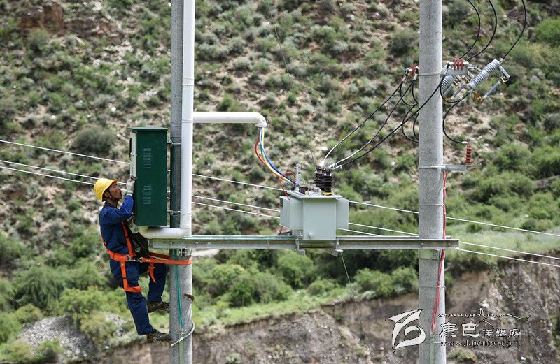 圖為白玉縣熱加鄉(xiāng)藏東村,電力工作人員在檢查設備。(本報資料庫)