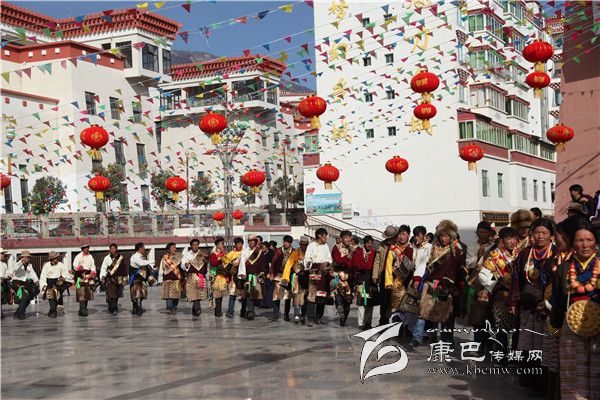 大年初三早上十點,鄉(xiāng)城縣城的社區(qū)群眾穿戴盛裝在香巴拉休閑廣場圍成大圓圈,跳起了歡快的鍋莊。隨著歌師的唱詞,男女舞者手牽著手踏著節(jié)拍邊唱邊跳,讓節(jié)日的鄉(xiāng)城縣城充滿了喜慶的氣氛。