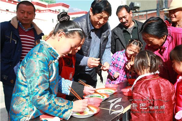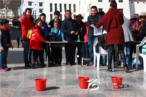 據了解,從大年初三開始,在香巴拉廣場上,除了鍋莊表演外,最吸引人的就是新春游園活動。大年初五早上,在歡快的音樂聲中,群眾成群結隊的趕往香巴拉休閑廣場參加新春游園活動。這次的游園活動除了夾珠子、投飛鏢等項目外,還有筷子入瓶、彈球入杯等內容?;顒蝇F場,擁色帶著侄女甜甜早早就開始排隊,她們已經玩了好幾個游戲,掙了好幾張兌獎卷。她告訴筆者,游園活動的獎品雖然不多,但新年能拿到禮物,心里還是樂滋滋的,更為重要的是能和大家一起熱熱鬧鬧過個年。