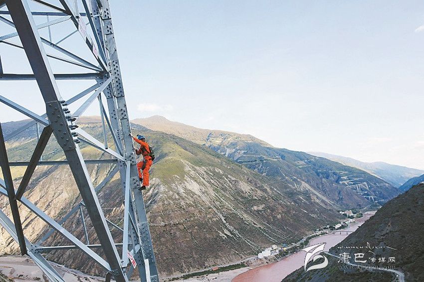 8月23日,國(guó)網(wǎng)四川省電力送變電公司集合了20余人的突擊小組,展開了鋼化玻璃絕緣子更換的高空作業(yè)。在更換過(guò)程中,高空人員要忍受高原烈日的燒灼,扶著燙手的金具和“綠瓶”絕緣子,攀爬到70米高。除了更換受損器件外,檢修工作還包括對(duì)塘鄉(xiāng)一二線、塘瀾一二線的跨江導(dǎo)線進(jìn)行走線檢查。兩檔導(dǎo)線最低點(diǎn)距離金沙江江面均超過(guò)100米。由于跨越檔距大,江面風(fēng)力強(qiáng)勁,導(dǎo)致導(dǎo)線擺動(dòng)劇烈,在安全帶的保護(hù)下,“蜘蛛俠”們手腳并用,在銀線上如同燕子般滑行。