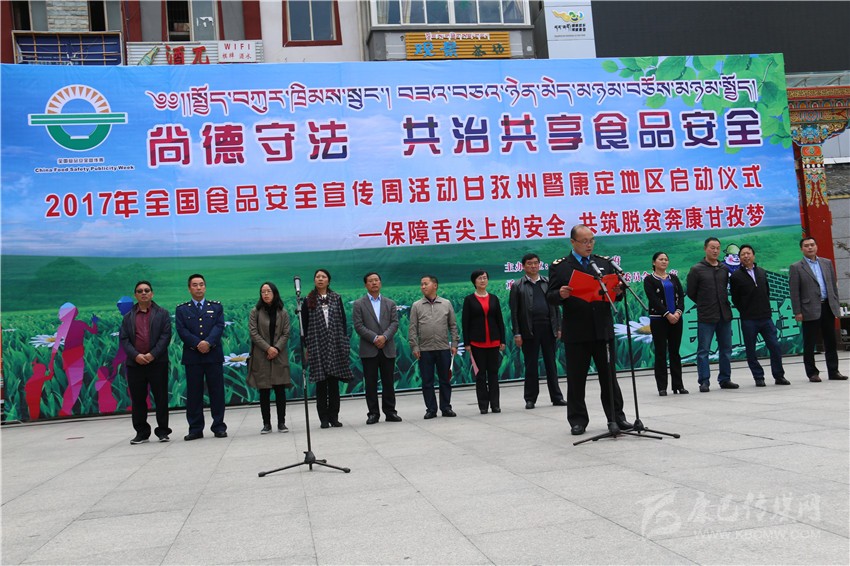 本網(wǎng)訊(記者 宋志勇 文/圖)6月29日,由州人民政府主辦的“2017年全國食品安全宣傳周活動(dòng)”暨康定地區(qū)啟動(dòng)儀式在康定舉行,目的是進(jìn)一步普及安全法律法規(guī)和基本知識(shí),提高公眾的食品安全意識(shí)和自我保護(hù)能力,進(jìn)一步強(qiáng)化食品生產(chǎn)經(jīng)營者的法律意識(shí)、責(zé)任意識(shí)、誠信意識(shí),進(jìn)一步強(qiáng)化食品安全“政府負(fù)總責(zé)、監(jiān)管部門各司其責(zé)、食品生產(chǎn)經(jīng)營者是第一責(zé)任人”的責(zé)任,為構(gòu)建食品安全長效機(jī)制營造良好的氛圍。