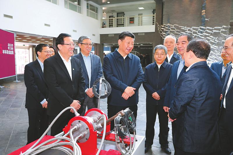 近年來,北京大學(xué)培養(yǎng)和匯聚了一批具有世界領(lǐng)先水平的科學(xué)家、科技領(lǐng)軍人才和創(chuàng)新團(tuán)隊(duì),科研綜合實(shí)力、原始創(chuàng)新能力顯著增強(qiáng)。在金光生命科學(xué)大樓一層大廳,展示了近年來北京大學(xué)在理科、工科、醫(yī)科等領(lǐng)域的科研成果。習(xí)近平認(rèn)真聽取關(guān)于學(xué)校學(xué)科建設(shè)、人才隊(duì)伍建設(shè)、科研創(chuàng)新能力提升等情況介紹,并仔細(xì)察看新一代干細(xì)胞技術(shù)、碳芯片技術(shù)、微型雙光子顯微成像系統(tǒng)等科研裝置和實(shí)物模型。習(xí)近平對大家說,看了你們的成果展示,我為你們感到驕傲。創(chuàng)新是引領(lǐng)發(fā)展的第一動力,是國家綜合國力和核心競爭力的最關(guān)鍵因素。重大科技創(chuàng)新成果是國之重器、國之利器,必須牢牢掌握在自己手上,必須依靠自力更生、自主創(chuàng)新。在這個問題上,我們一定要保持清醒。要繼續(xù)深化科技體制改革,把人、財(cái)、物更多向科技創(chuàng)新一線傾斜,努力在關(guān)鍵共性技術(shù)、前沿引領(lǐng)技術(shù)、現(xiàn)代工程技術(shù)、顛覆性技術(shù)創(chuàng)新上取得更大突破,搶占科技創(chuàng)新制高點(diǎn)。高校是科技創(chuàng)新體系的重要組成部分,高??蒲腥藛T是我國科技創(chuàng)新的重要隊(duì)伍。要加強(qiáng)學(xué)科之間的協(xié)同創(chuàng)新,加強(qiáng)對交叉學(xué)科群和科技攻關(guān)團(tuán)隊(duì)的支持,培養(yǎng)造就更多具有國際水平的科技人才和創(chuàng)新團(tuán)隊(duì)。