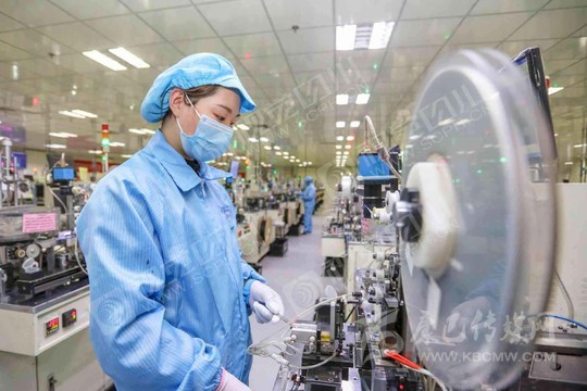 2020年2月17日,遂寧市經(jīng)開(kāi)區(qū)藍(lán)彩電子智能信息化車間,工人正在生產(chǎn)線開(kāi)足馬力加緊生產(chǎn)。該企業(yè)作為西南片區(qū)重要的電子信息產(chǎn)業(yè),其產(chǎn)品主要用于數(shù)碼產(chǎn)品、電腦、電視等領(lǐng)域。自復(fù)工后,一線員工回崗率70%以上,加班加點(diǎn)生產(chǎn)保障市場(chǎng)經(jīng)濟(jì)平穩(wěn)運(yùn)行。
