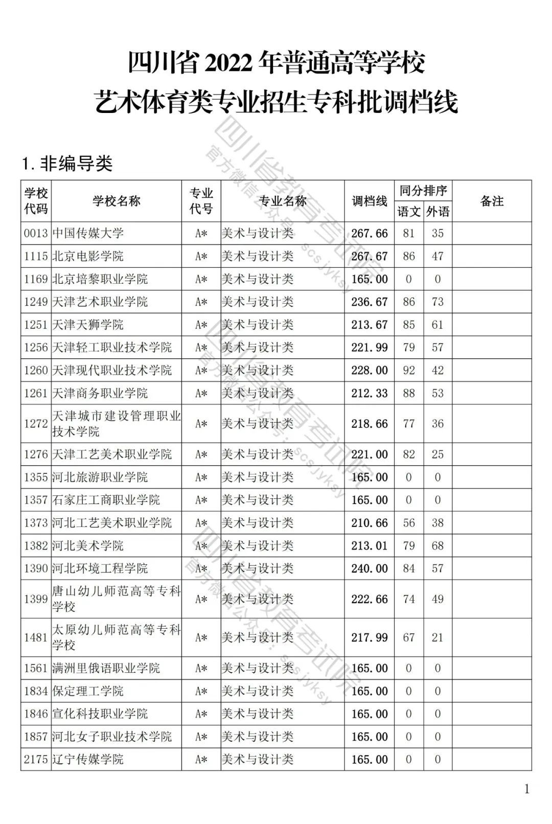 四川省2022年普通高等學校藝術體育類??婆延?月5日投檔錄取。為方便廣大考生和家長及時了解錄取信息,省教育考試院按非編導類和編導類發(fā)布了藝體類分校、分專業(yè)類調檔線。