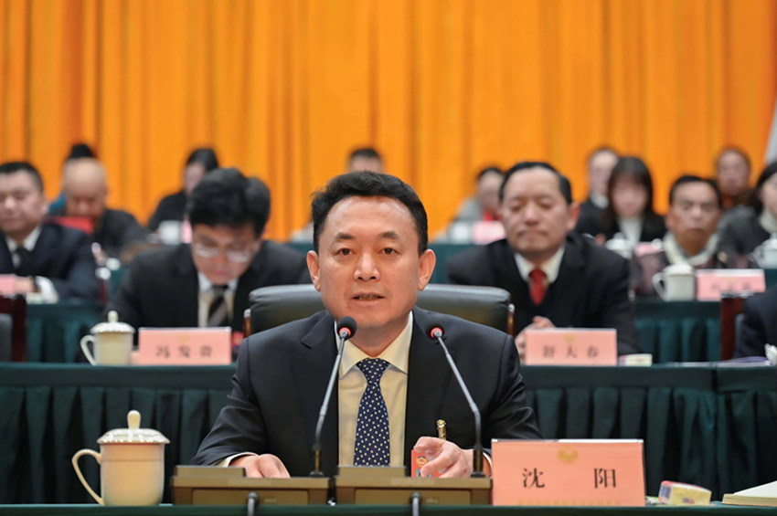 1月29日,甘孜藏族自治州第十三屆人民代表大會(huì)第三次會(huì)議、政協(xié)甘孜藏族自治州第十四屆委員會(huì)第三次會(huì)議在康定開(kāi)幕,州委書(shū)記沈陽(yáng)出席開(kāi)幕會(huì)。圖為沈陽(yáng)在州政協(xié)十四屆三次會(huì)議開(kāi)幕會(huì)上講話。賴強(qiáng) 甲央讓布 攝
