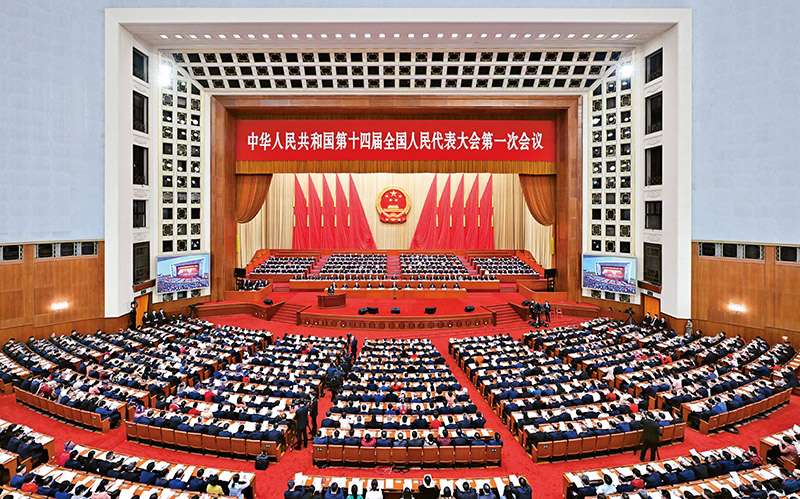圖為2023年3月5日,第十四屆全國(guó)人民代表大會(huì)第一次會(huì)議在北京人民大會(huì)堂開幕。 新華社記者 翟健嵐/攝