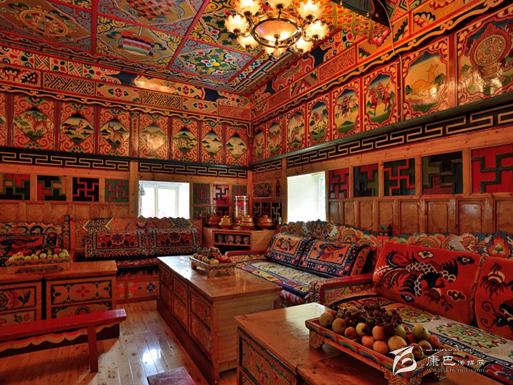 在功能布局上,打造別墅式風(fēng)格,對公共區(qū)域和每個(gè)院落進(jìn)行改造,擴(kuò)大綠化面積,強(qiáng)化視覺效果;在外觀設(shè)計(jì)上,根據(jù)藏族傳統(tǒng)的建筑風(fēng)格,提升風(fēng)貌改造,從外觀上體現(xiàn)原滋原味的本土特色;在色調(diào)搭配上,采用藏族偏愛的暖色調(diào)和古典色加以渲染,融合現(xiàn)代與民族特色;在室內(nèi)裝修上,使用精美的藏式地毯、銅器、陶制品等傳統(tǒng)藏式器皿裝飾,采用唐卡、藏族題材油畫等元素點(diǎn)綴,并適當(dāng)差異化裝修,以體現(xiàn)自然隨性舒適,讓游客透過每一個(gè)家庭感受到濃郁的藏寨風(fēng)情。