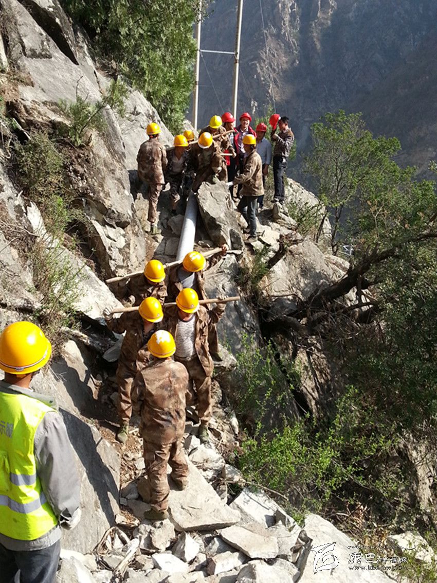 崇山峻嶺,羊腸小道,運(yùn)送變壓器器材只能靠人工,施工隊(duì)人手不夠,村民主動(dòng)參與,齊心協(xié)力將器材運(yùn)送到數(shù)公里以外的建設(shè)工地。