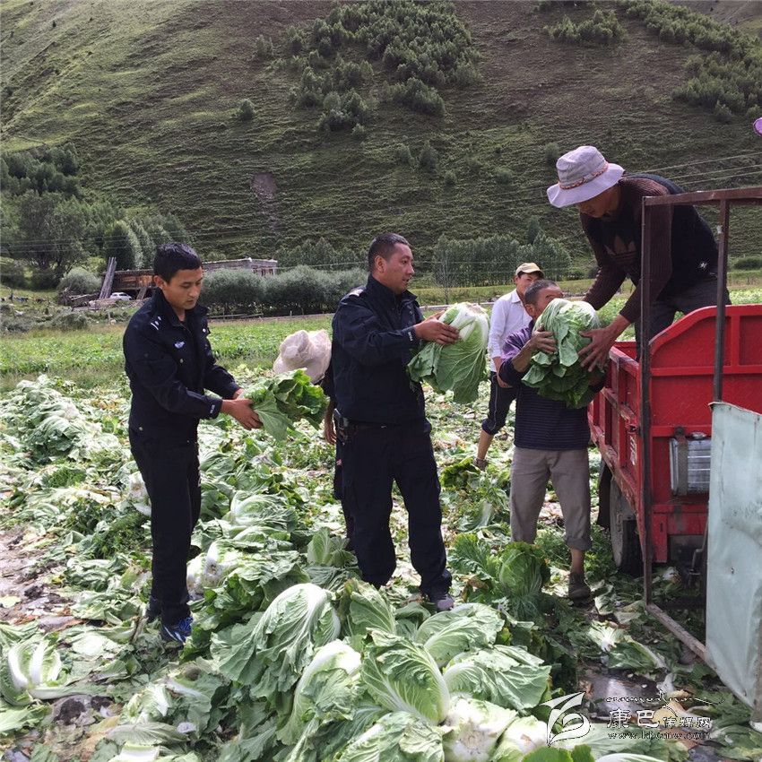 本網(wǎng)訊(記者 克珠 文/圖)連日來,康定市呷巴鄉(xiāng)派出所民警澤仁羅布和他的同事一直在幫扶貧困戶澤仁志瑪?shù)氖卟说乩锩€不停。去年,澤仁羅布在主動與呷巴鄉(xiāng)呷巴下村貧困戶澤仁志瑪結(jié)成扶助對子后,動員她利用村里交通便捷和土地較好集中的優(yōu)勢發(fā)展蔬菜種植。今年,澤仁羅布又邀請農(nóng)業(yè)技術(shù)人員到她家指導(dǎo)種植技術(shù),并免費(fèi)贈送了白菜種子。“今年我種了10多畝白菜,一年收入大概在3萬元左右”。澤仁志瑪說。圖為澤仁羅布和同事正在搬運(yùn)蔬菜。