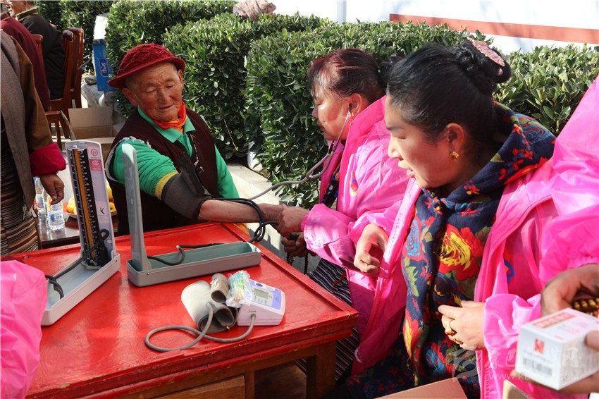 “我們送來的衣服和鞋子都是為老人們量身定制的,愿老人們健康快樂。”志愿者志瑪說。圖為志愿服務現(xiàn)場。