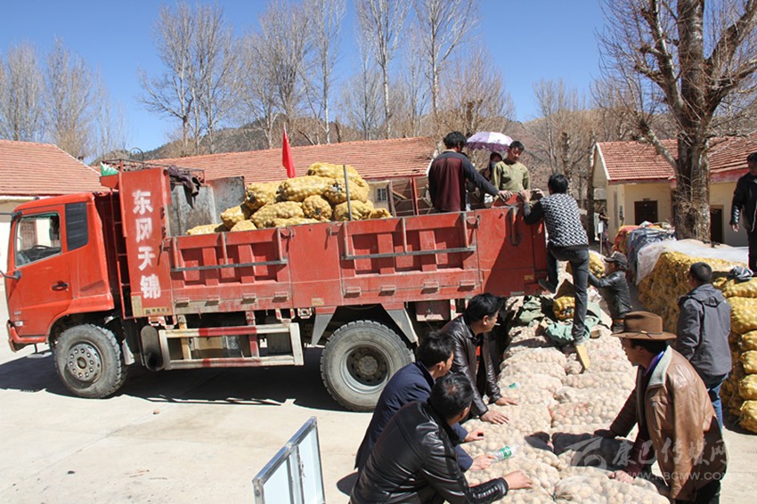 村民正在搬運(yùn)免費(fèi)發(fā)放的馬鈴薯等農(nóng)用物資。