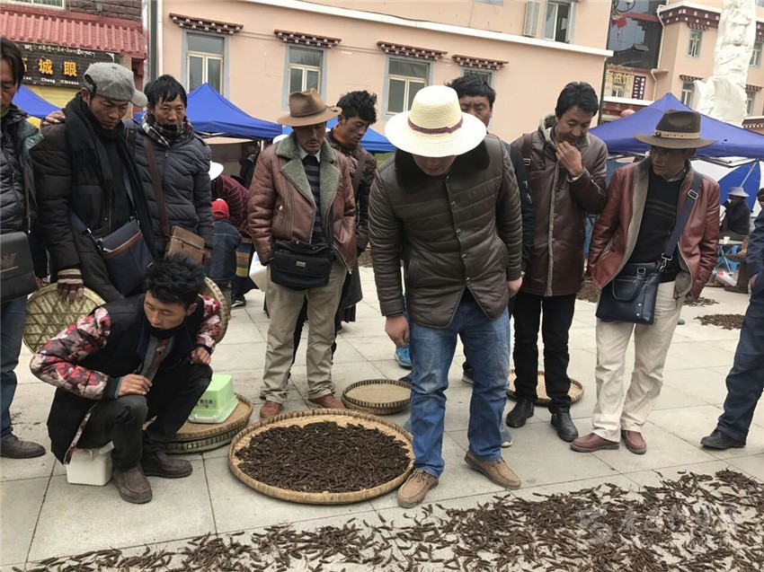 收購(gòu)商在理塘格薩爾廣場(chǎng)看蟲(chóng)草。