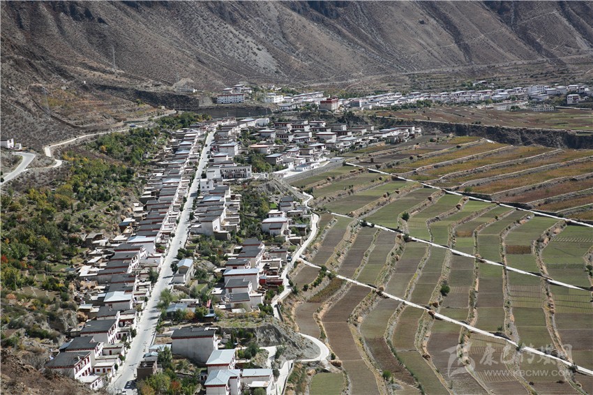 作為處于高山峽谷間的得榮縣鄉(xiāng)村,村民大多生活在懸崖峭壁上,或地質(zhì)災(zāi)害嚴(yán)重的地區(qū),生存條件極差,為了徹底斬除窮根,縣委、縣政府把開發(fā)的目光投向了地勢(shì)相對(duì)平坦的因都?jí)巍?1月10日,記者再訪因都?jí)?。初冬的因都?jí)侮柟鉅N爛,溫暖如春。一棟棟民居、一層層梯田橫臥在青山綠水間,蔚為壯觀。農(nóng)閑季節(jié),村民們愜意地坐在自家庭院的亭子里,喝著酥油茶、品嘗著藏橘、梨子、蘋果和核桃。村道兩旁的藏橘碩果滿枝頭,寬敞的街道、靚麗的民居,一幅壯美的富春山居圖在金沙江畔徐徐展開。