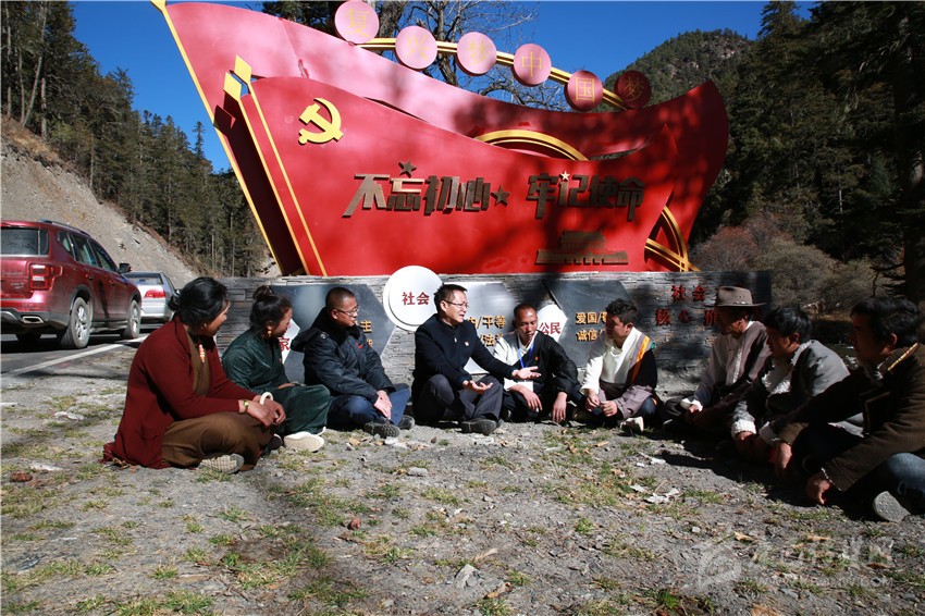 11月20日,記者乘坐的采訪車從稻城亞丁景區(qū)入口方向拐了個彎,沿著平坦的柏油路前行了26公里,木拉鄉(xiāng)麻格同村便映入眼簾,一塊黨旗造型的文化墻上寫著“不忘初心、牢記使命”幾個大字,墻體下方刻有社會主義核心價值觀內(nèi)容,讓人眼前一亮。幾個村民圍坐在一起,商量著什么。記者停車詢問得知,四川旅投集團(tuán)駐村干部王雷正在和村“兩委”以及部分村民代表,商議動工修建棧道,為游客開展馬幫服務(wù)的事情。