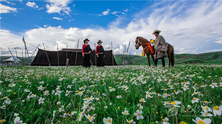 “我們鄉(xiāng)唯一的資源就是旅游資源,經(jīng)過廣泛調(diào)研,我們決定‘以宗塔草原為依托,按照牧旅融合思路,精心打造宗塔七色草原生態(tài)度假村,推動全鄉(xiāng)產(chǎn)業(yè)轉(zhuǎn)型’?!编l(xiāng)黨委書記奇美倫珠說,在縣委縣政府的關(guān)心支持下,2017年初,宗塔鄉(xiāng)成立了以全鄉(xiāng)8個行政村為股東的“爐霍縣宗塔百姓樂牧業(yè)有限責(zé)任公司”,打造一個集帳篷酒店、帳篷餐飲、休閑娛樂、文化體驗、草原觀光為一體的牧旅融合生態(tài)度假村。公司整合村集體經(jīng)濟(jì)產(chǎn)業(yè)發(fā)展資金和各類項目資金,縣委、縣政府撥出相關(guān)項目資金修建了環(huán)宗塔草原旅游公路,為度假村解決了交通問題。