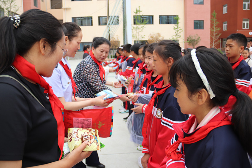 孩子們被節(jié)日前滿載愛(ài)心的禮物和祝福感動(dòng),他們?yōu)槲繂?wèn)組的叔叔阿姨戴上鮮艷的紅領(lǐng)巾,小手牽大手留下美好感動(dòng)的時(shí)刻。