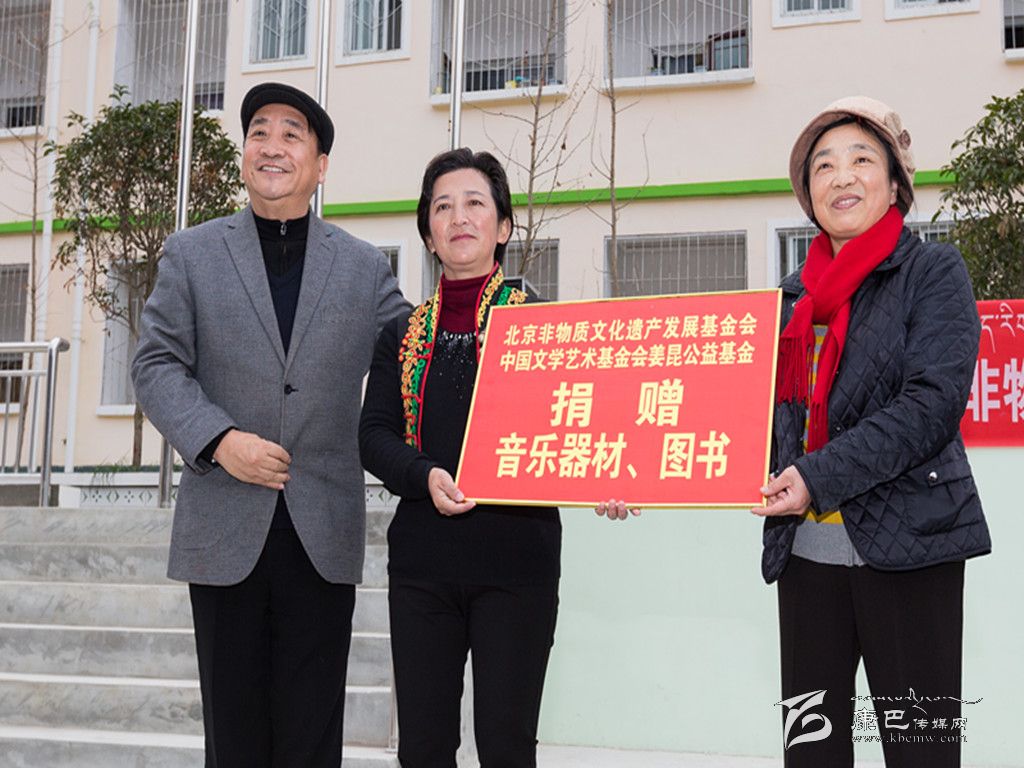 日前,全國政協(xié)委員、北京非物質文化遺產(chǎn)發(fā)展基金會形象大使、中國文學藝術基金會副理事長、中國文藝志愿者協(xié)會主席姜昆(左)和北京非物質文化遺產(chǎn)發(fā)展基金會第一副理事長史秋秋(右),率團來我州援助學校音樂器材和圖書。圖為瀘定縣貢嘎山小學李英校長(中)代表我州受贈學校接收贈品。(馮光福 攝影報道)