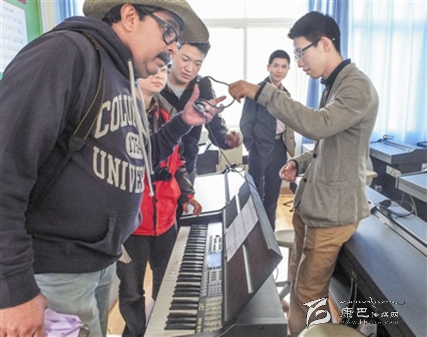 隨后,達哈爾·阿斯毫克一行來到教學(xué)區(qū),通過參觀學(xué)生閱讀室、多功能音樂訓(xùn)練室、多媒體教室了解了該校的硬件設(shè)施建設(shè)和綜合發(fā)展情況。在學(xué)生閱讀室,達哈爾·阿斯毫克和同伴們認(rèn)真聽取了學(xué)校工作人員關(guān)于閱讀室內(nèi)圖書種類、圖書使用情況的介紹;當(dāng)發(fā)現(xiàn)其中有不少圖書是鄉(xiāng)城的地方性著作時,一名尼泊爾記者當(dāng)即感慨“太了不起了!”。親自試用教室里陳放的電子鋼琴之后,印度《西隆時報》德里站首席記者納亞克表示,“眼前所看到的一切然我對中國教育的發(fā)展感到驚奇。”他這一說法也很快引起同行者的共鳴。