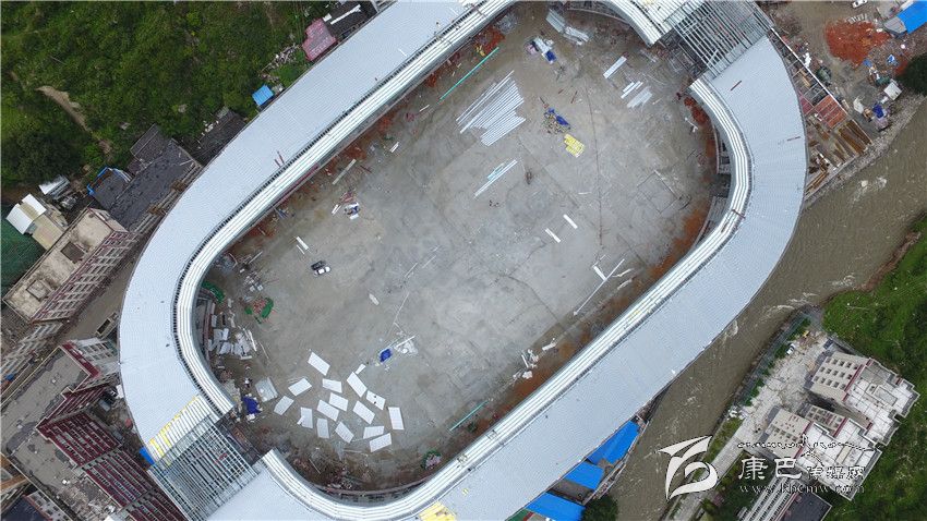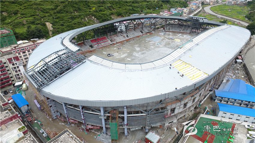 本網(wǎng)訊(余秋林 記者 肖宵 文/圖)第九屆康巴藝術(shù)節(jié)主要場館——康定北門體育場全面升級改造已進(jìn)入尾聲。圖為從空中鳥瞰康定北門體育場。