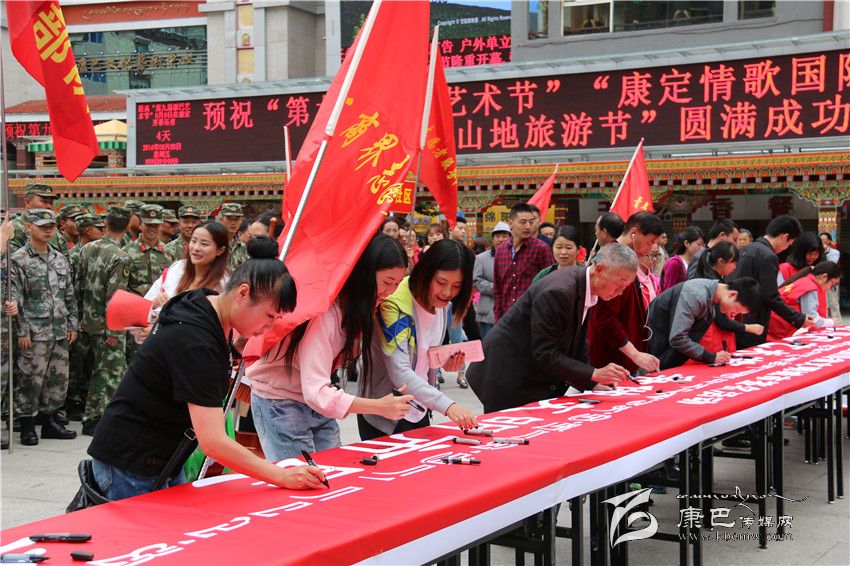 本網(wǎng)訊(記者 宋志勇 文/圖)8月5日,由州文明辦、州直工委、康定市文明辦共同舉行的康定地區(qū)迎“康巴藝術(shù)節(jié)”爭當(dāng)文明市民簽名暨志愿服務(wù)活動(dòng)在情歌廣場正式拉開帷幕。來自康定地區(qū)社會(huì)各界的青年志愿者服務(wù)隊(duì)、巾幗志愿者服務(wù)隊(duì)、工商界志愿者服務(wù)隊(duì)、衛(wèi)生系統(tǒng)志愿者、駐康部隊(duì)志愿者服務(wù)隊(duì)、州級(jí)機(jī)關(guān)志愿者服務(wù)隊(duì)、市直機(jī)關(guān)志愿服務(wù)隊(duì)、環(huán)衛(wèi)志愿者服務(wù)隊(duì)等共計(jì)1000余人參與。