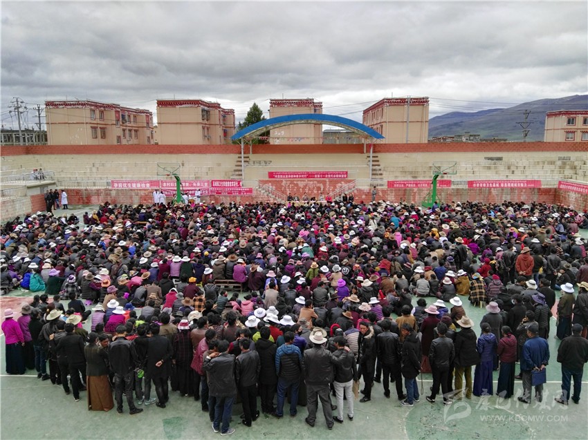 為了聽這場宣講,卡仁呷瑪起了個大早,帶領30多名在家村民,坐汽車、騎摩托從25公里外的村上趕到鄉(xiāng)政府。雖然宣講會10點才開始,9點過鄉(xiāng)政府院壩就坐滿了從十個村趕來的226名牧民群眾。