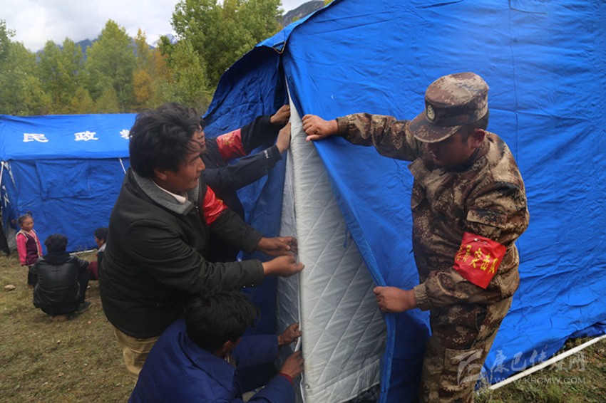 走進炯青洞臨時安置點27號帳篷,見到村民康珠正在整理被蓋。她介紹說,縣里給每戶村民發(fā)了5床棉被,發(fā)放了礦泉水、方便面、餅干,發(fā)放了常用藥,還拉上了電,每天晚上能用上4個小時的電,我們睡了,還有黨員干部輪流值班?!包h和政府為我們想得很周到,讓我們吃得飽穿得暖還睡得安全。”