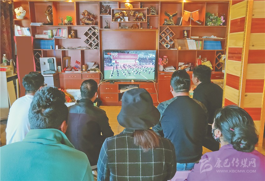 在得榮縣統(tǒng)計局會議室,該局干部職工早早就守候在電視機前,等待直播開始。當(dāng)慶祝大會現(xiàn)場國旗升起、國歌奏響,該局干部職工也全體起立,向國旗行注目禮,同唱國歌;當(dāng)看到精彩處時,大家不禁激動地?zé)崃夜恼?,齊聲叫好?!翱吹降脴s方隊的激情表演,那震撼的場面讓我心潮澎湃?!贝稳嗜褐壹拥卣f,“我們親眼目睹、親身感受了甘孜州成立70年來得榮發(fā)生的翻天覆地的變化,尤其是近十年來,發(fā)展越來越快、越來越好,作為一名甘孜兒女,我為生活在這片熱土感到非常自豪。”