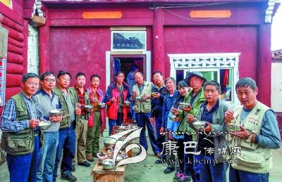 創(chuàng)作采風(fēng)期間,北部高原帶著泥土芬芳的生活深深地陶醉了隊員們,不知不覺,大家都成了早起晚歸,不辭艱辛的攝影人。每天早上4、5點(diǎn)起床是常事,夜幕四圍才吃晚飯更是習(xí)慣。團(tuán)結(jié)、協(xié)作、樂于助人成為一種自覺的風(fēng)氣:60多歲的趙文光老師退休前曾任過康定縣宗教局和縣政法委領(lǐng)導(dǎo),他成為采風(fēng)隊最好的藏語翻譯;身板硬朗的他還被稱為“能攆獐子”的人。隊員辛沂外出拍照的時間最多,走的地方也很多,外出經(jīng)驗豐富,他精心準(zhǔn)備的常用藥品熱心幫助了許多人。唐保安老師工作時常到農(nóng)村牧區(qū)調(diào)研,日積月累的基層生活知識成了采風(fēng)中不可多得的向?qū)?。被譽(yù)為攝影后期制作高手的胡庭輝每天義務(wù)為隊友考貝蓄存卡,講解攝影知識。王明陽、游建中更是身體力行地作表率,吃苦在前,當(dāng)向?qū)Фㄅ臄z點(diǎn),心甘情愿地為隊友們服務(wù)。在宗塔草原民居接待站,高齡的代奇元老師和游建中不顧外出拍攝的勞累,主動熱心地親自下廚,為隊友們做出可口的飯菜。13日上午,藍(lán)色中巴在海拔3600公尺的老折山爆胎,州攝協(xié)主席,也是這次帶隊的郭昌平身先士卒,帶領(lǐng)會修車的胡庭輝、黃元康等不顧高山缺氧,積極幫司機(jī)換輪胎。離開宗塔草原最后一晚,原本安排此行唯一一次早上8點(diǎn)起床,讓隊員們好好休息一個早上,沒想到不到早上6點(diǎn),全體隊員無一遺漏地都起床追光逐影拍照去了。來自四川民族學(xué)院的黃元康外出拍照返回,還忙著幫中巴車?yán)顜煾挡料窜噹?。李師傅在?chuàng)作采風(fēng)期間也深受感染,這天也沒在床上呆住。他對筆者說:這段時間和你們早晚相處,才知道攝影創(chuàng)作有多辛苦,你們的吃苦耐勞精神不得不讓人佩服。我今早上也睡不著呀,起來擦洗車廂,也想讓你們路途中乘坐得舒服一點(diǎn)……