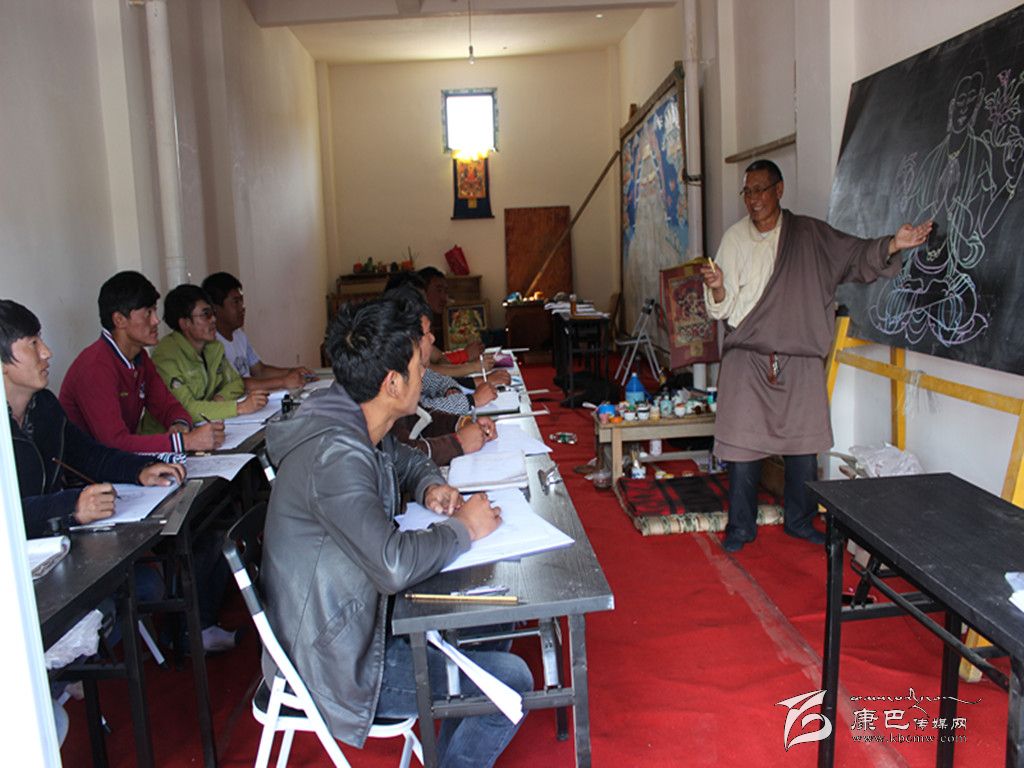 四年前,呷絨多吉自籌資金在家中辦起了唐卡繪畫(huà)培訓(xùn)班,繪畫(huà)所用的紙張、顏料、筆墨等全由他免費(fèi)提供給學(xué)生,幾十個(gè)學(xué)生的伙食,則由家中的兒媳李露華承擔(dān),家務(wù)事由妻子奪呷一個(gè)人操持。四年如一日的堅(jiān)持,其中的辛苦不言而喻,家人卻毫無(wú)怨言,日復(fù)一日年復(fù)一年地?zé)o私奉獻(xiàn)著。