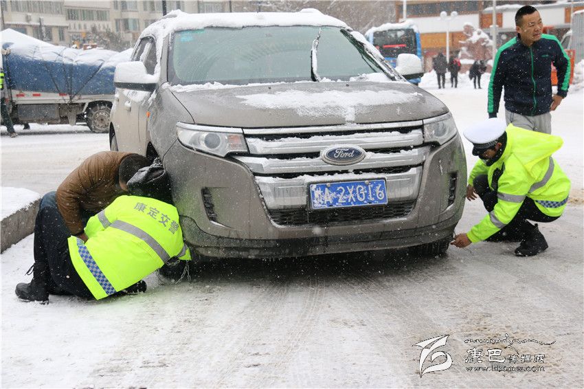 康定交警大隊(duì)城區(qū)中隊(duì)的扎西澤仁立即走上前去詢問:“前面更滑,你肯定上不去,有沒有鏈條?”車主譚光復(fù)隨即下車答道:“有,可是不會(huì)上。”