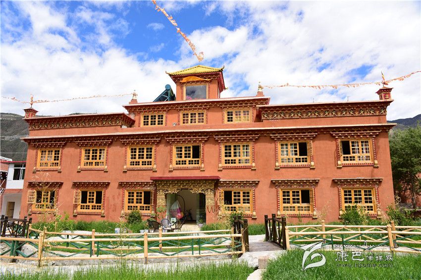 跟朗杰一樣,獨(dú)角龍村農(nóng)民多吉曲登也曾去香格里拉、稻城等地考察,回來后也搞起了民居接待,起名“德噶林”。德噶林是在原有藏房的基礎(chǔ)上進(jìn)行特色裝修而成,既保存了巴塘紅藏房原本的構(gòu)架,又融入了一些現(xiàn)代建筑元素。民居內(nèi)部的灶臺、茶桶、水缸等裝飾無不凸顯著巴塘深厚的農(nóng)耕文化。頗具現(xiàn)代氣息的衛(wèi)生間、咖啡廳等更是緊跟時代步伐。筆者采訪時恰遇一位前往西藏旅游的旅客辦理入住手續(xù),他告訴我們,在網(wǎng)上看到這家民居接待的信息時,覺得很有特色,價格也適中,就選擇了這里。還說如果原路返回的話,住巴塘仍會選擇住這里。