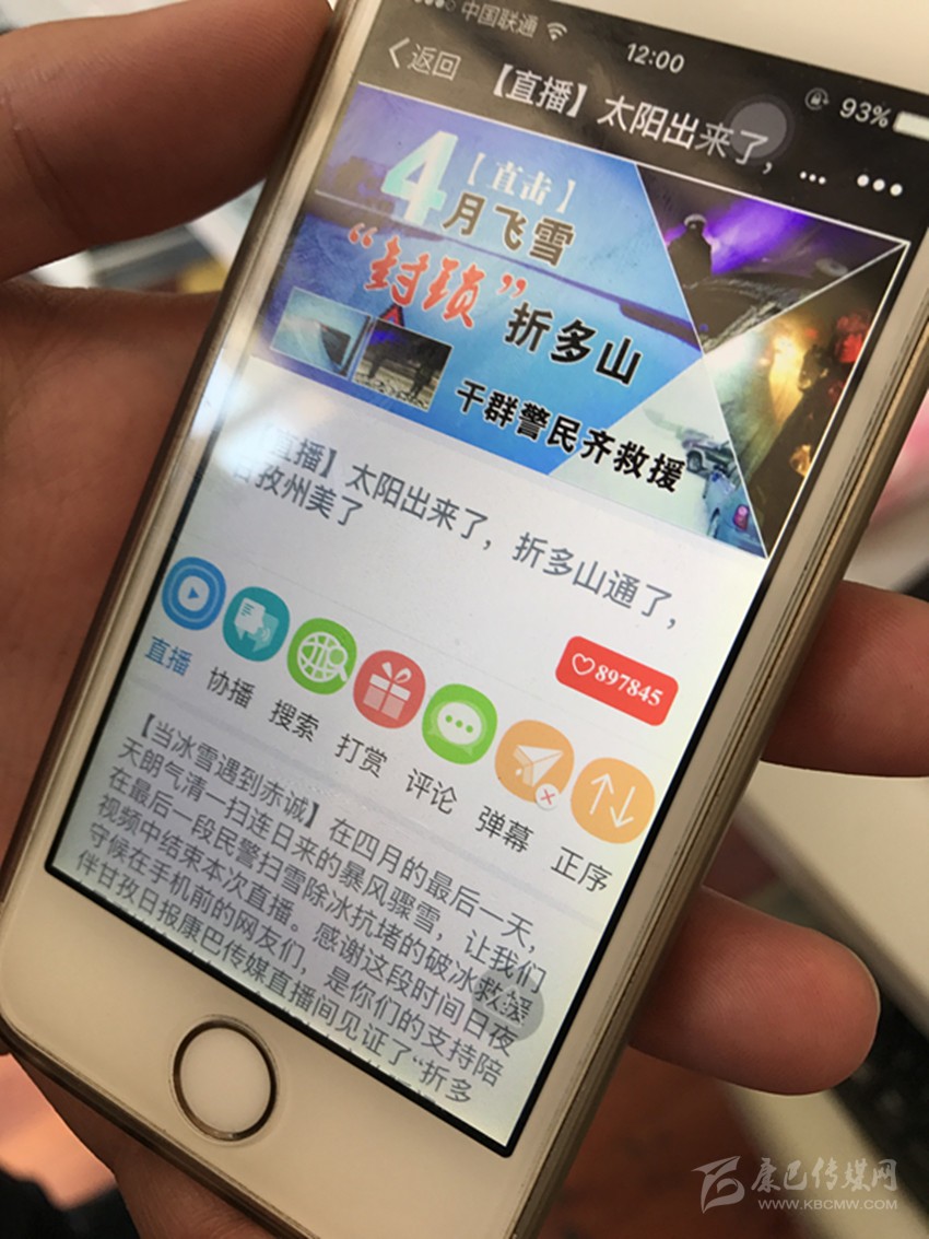 5月2日,隨著5.1小長假結(jié)束,甘孜日報(bào)對折多山突降大雪、引發(fā)交通堵塞的立體式報(bào)道告一段落,作為突發(fā)災(zāi)害性天氣,甘孜日報(bào)行動迅速,傳統(tǒng)媒體、掌上直播、康巴微信、甘孜發(fā)布等全媒體齊上陣,掌上直播《4月飛雪“封鎖”折多山,干群警民齊救援》,以其即時消息、圖片、視頻等海量信息,引發(fā)點(diǎn)擊“狂潮”,不到兩個小時,點(diǎn)擊量即超過35萬人次,至小長假結(jié)束,點(diǎn)擊量近百萬人次;康巴傳媒微信《4月飛雪,千人馳援》點(diǎn)擊量超12萬人次;甘孜日報(bào)社對折多山大雪現(xiàn)場立體交叉式直播被新華社、中國新聞網(wǎng)、華西都市報(bào)封面新聞、網(wǎng)易新聞頻道等州外媒體分別轉(zhuǎn)載或引用相關(guān)報(bào)道。我州應(yīng)急措施有力、有序,得到眾多媒體和網(wǎng)友紛紛點(diǎn)贊。州委常委、宣傳部長相洛稱贊甘孜日報(bào)在這次直播中,行動迅速、引導(dǎo)有力,既客觀報(bào)道了突發(fā)性災(zāi)害天氣對我州交通和旅游帶來的不利影響,更突出報(bào)道了我州和康定市采取的各項(xiàng)應(yīng)急措施,是一次媒體融合的有益嘗試。