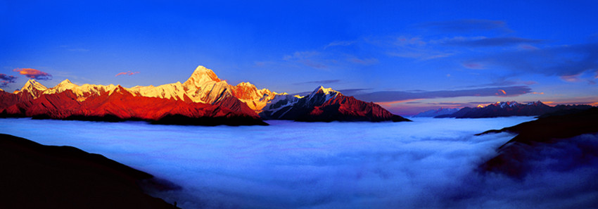 秋末冬初,雪山冰川、壯麗的高山峽谷、蒼莽的森林草甸、遼闊的高原牧場(chǎng),雪山、藏寨、草場(chǎng)、海子、彩林繪成一幅五彩的畫(huà)卷,又是那么高遠(yuǎn)純凈。這是時(shí)間的分娩、秋天的醺醉和色彩的狂歡,紛至沓來(lái)的游客在大美甘孜,盡享太陽(yáng)在藍(lán)天白云中噴薄而出那絢麗夢(mèng)幻的美景。